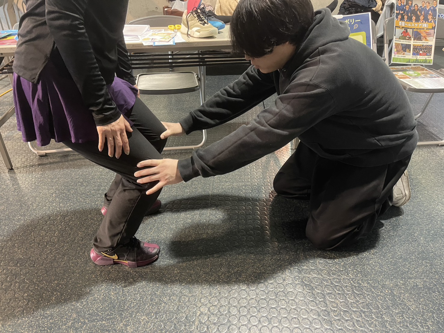 当日は、スポーツマッサージの施術、パフォーマンス向上を目的としたインソールの販売、そして試合中に怪我をされた方への応急処置対応を行いましたので、少し活動をご紹介させていただきます。